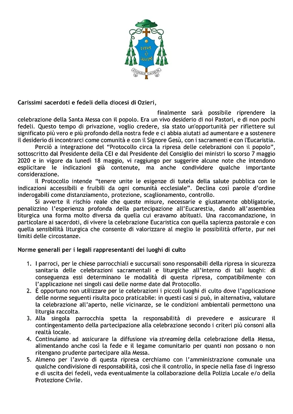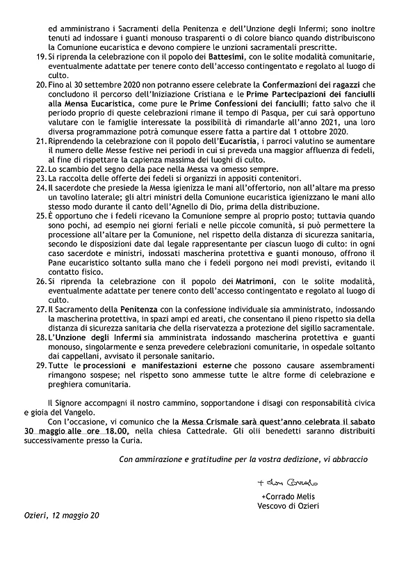Decreto del Vescovo per la ripresa delle Celebrazioni con il popoloNote del Vescovo per la ripresa delle Celebrazioni con il popolo. Comunicato Scarica in formato PDF Mons. Corrado Melis condividi su